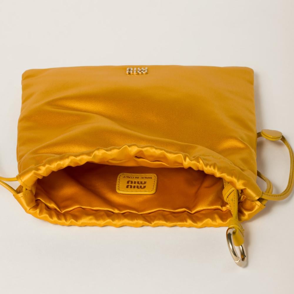 يتميز هذا الكيس العملي بملمس ناعم ساتان، ورباط إغلاق، ولوغو ميو ميو معدني بدرجة لون متناسقة. مزودة بخطاف إطباقرباط من الجلدإغلاق برباط من الجلدلوغو أحرف معدنيبطانة من الساتانالارتفاع 21cmالعرض 18cm