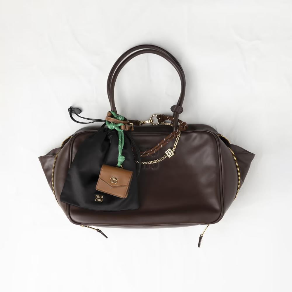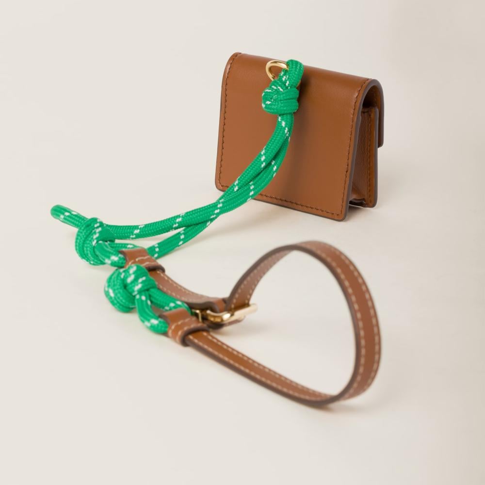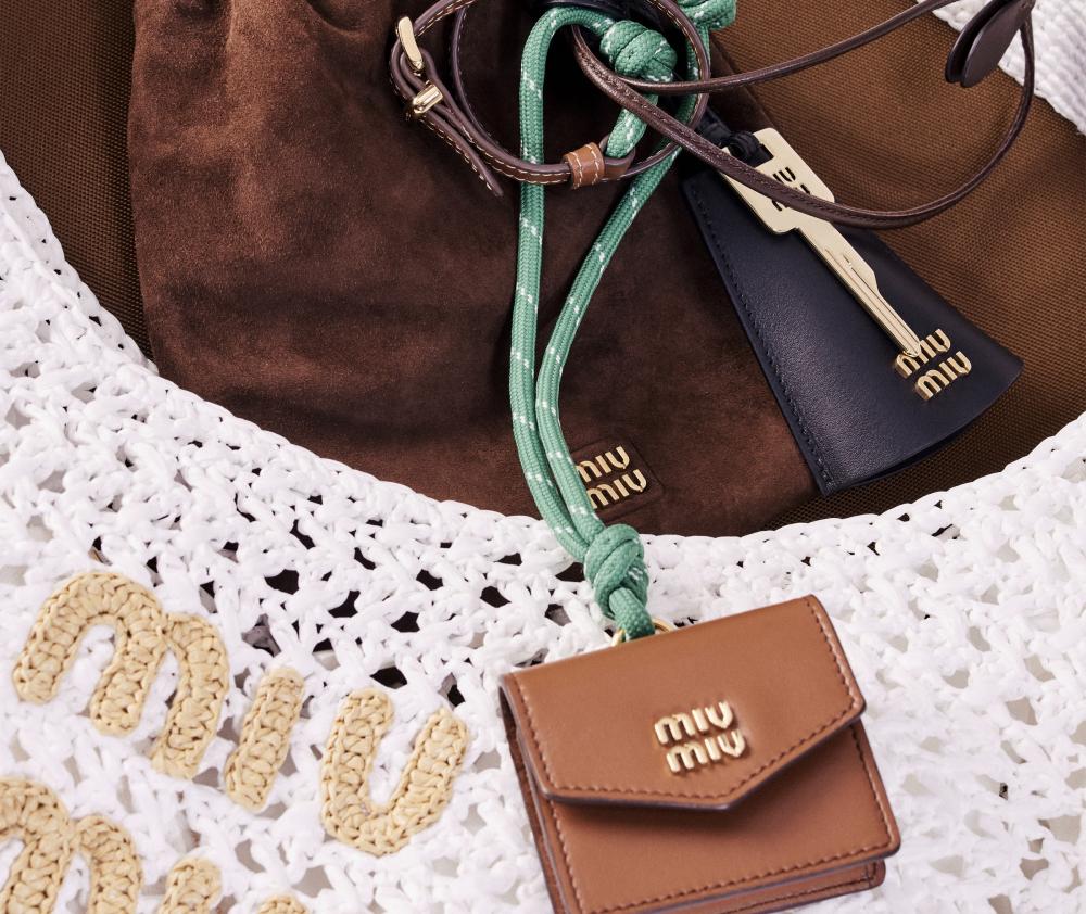 يتألق الأكسسوار بحلية من الجلد والحبال والمعدن متصلة به يكتمل معها التصميم المميز المرح. يكتمل جمال التصميم بلوغو أحرف يزين الكيس لإضفاء لمسة أيقونية.