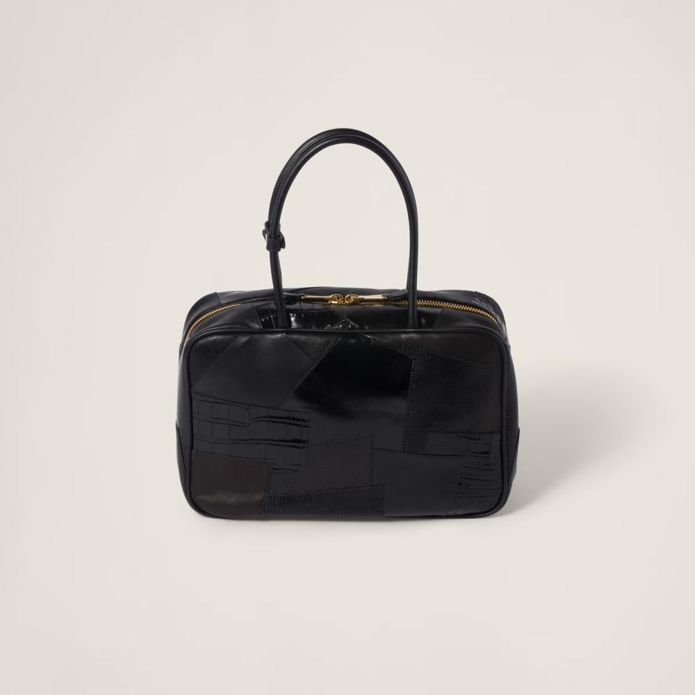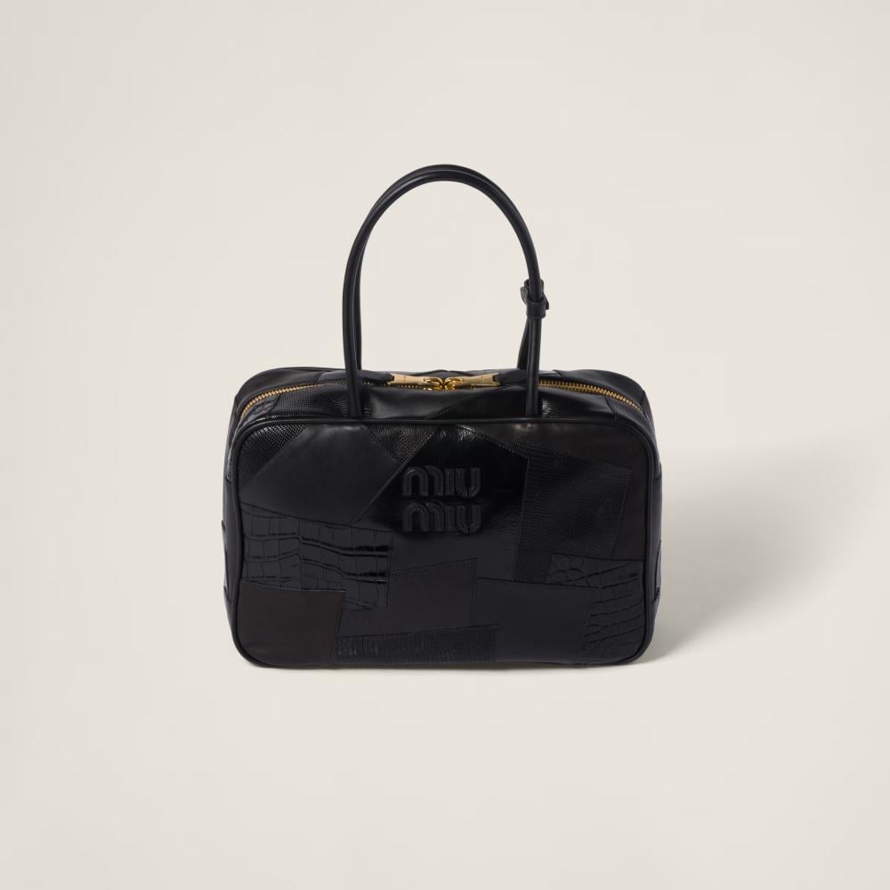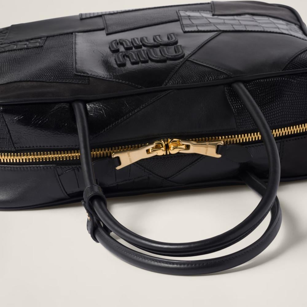 المرقعة في العمل مقابض جلدية أجهزة ذهبية اللون شعار حروف جلدية على المقدمة